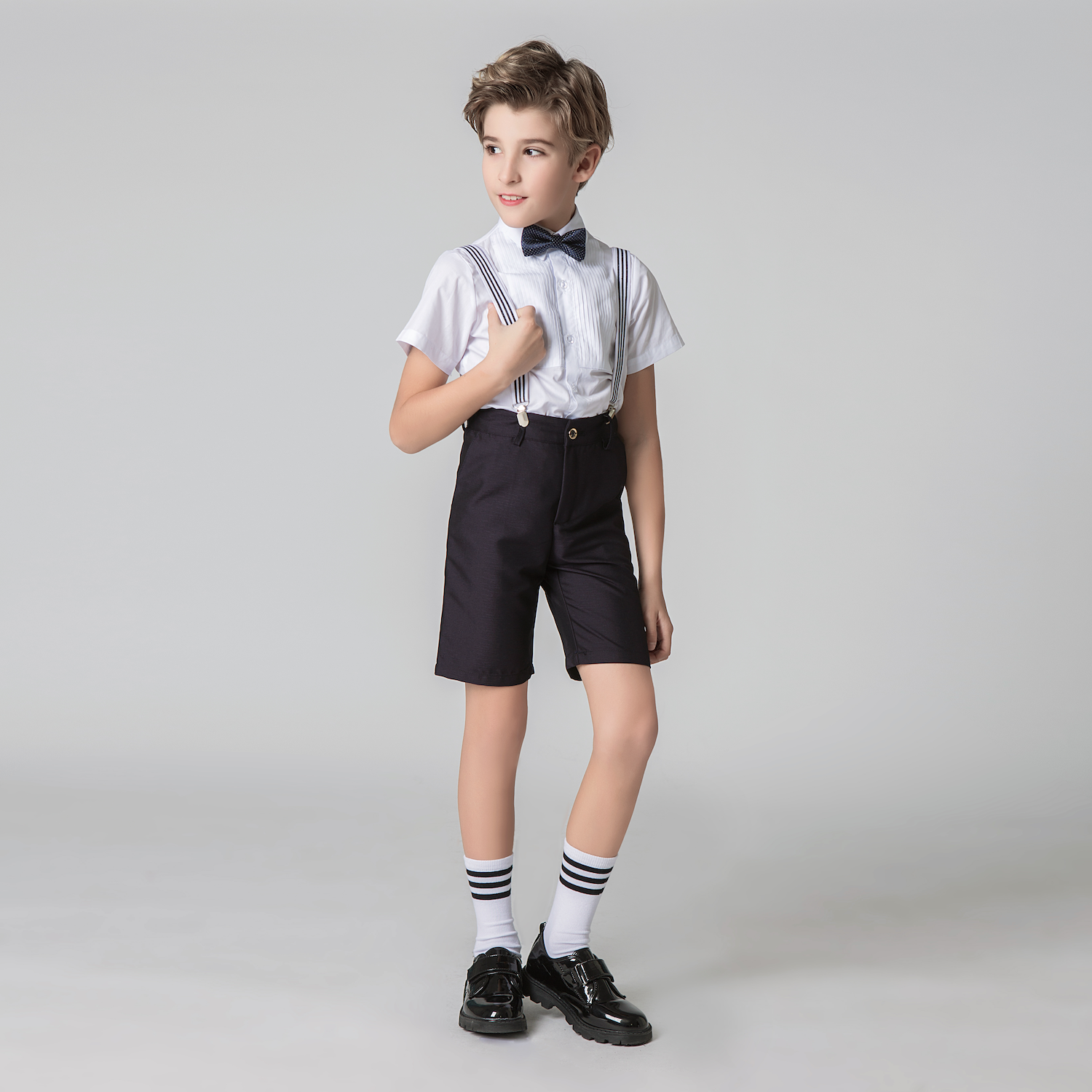 تتضمن العبوة: بنطلون + قميص + ربطة عنق + حمالة، بدلة مكونة من 4 قطع.
