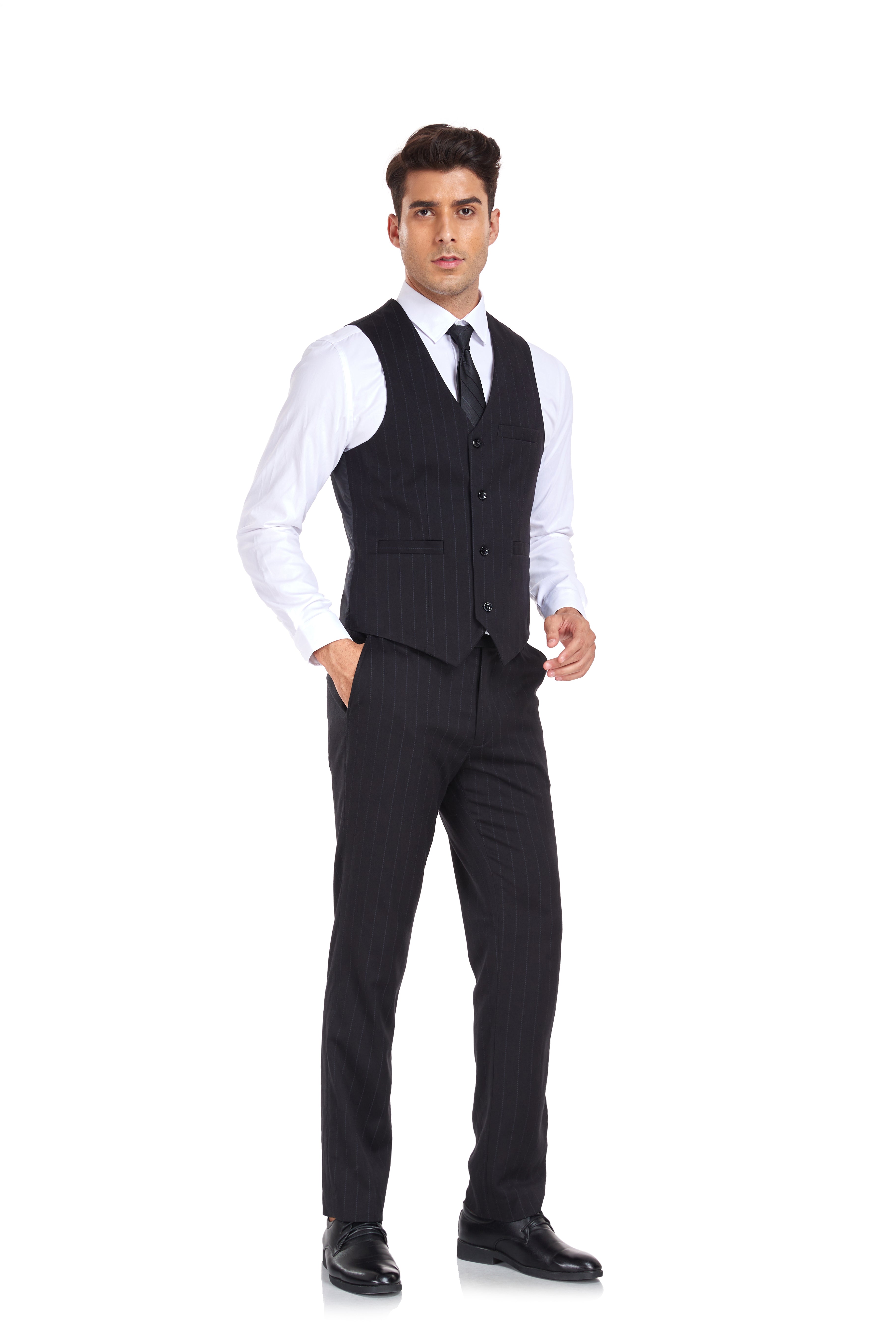 تتضمن الحزمة: سترة + بنطلون + سترة، بدلة مكونة من 3 قطع.