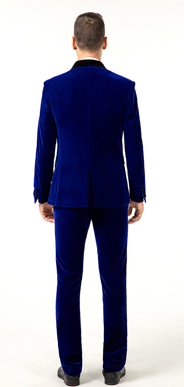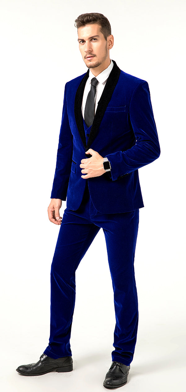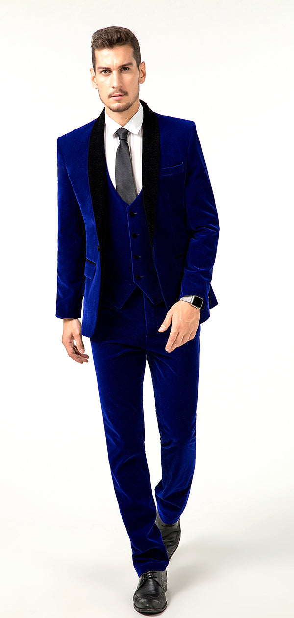 بدلات رجالية من المخمل الأزرق لحفلات الزفاف الرسمية والأعمال مكونة من 4 قطع متوفرة عبر الإنترنت MS011