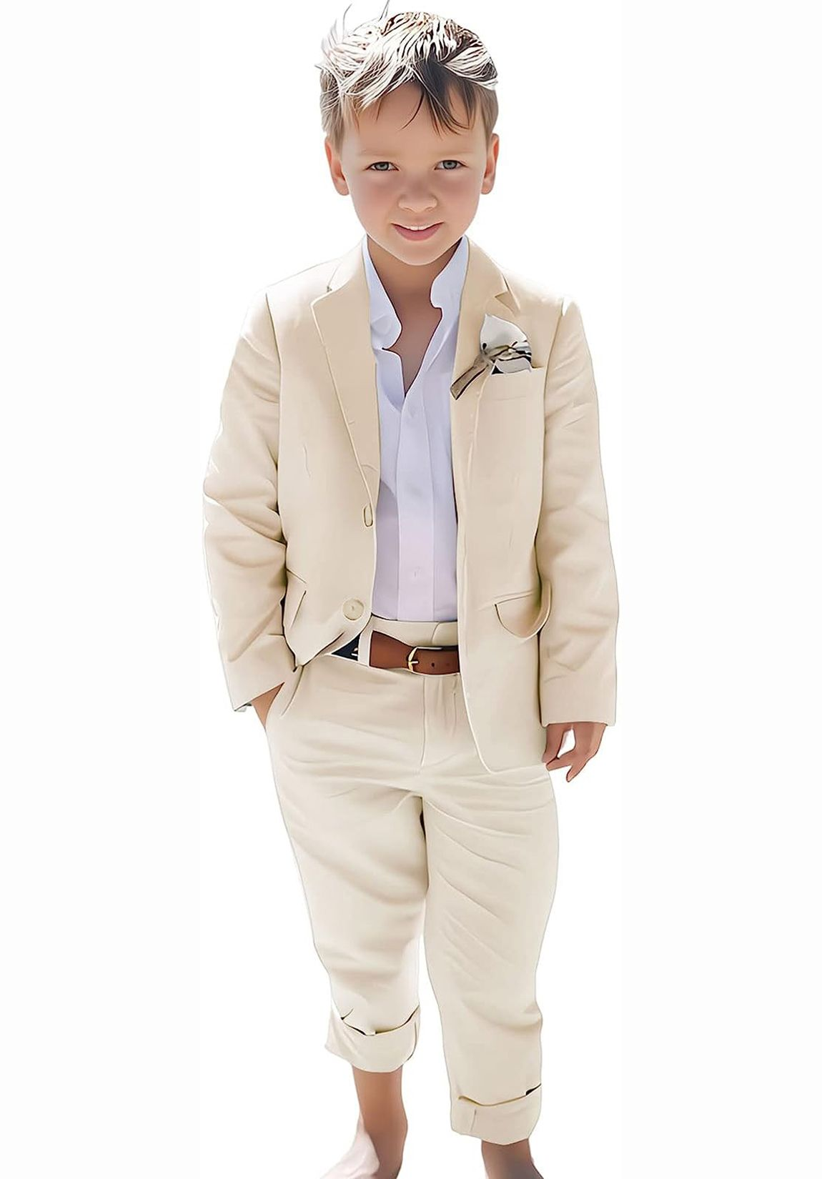 · Paquete: Conjunto de traje de lino de 2 piezas para niños, que incluye una chaqueta de traje de esmoquin para niño y un par de pantalones.