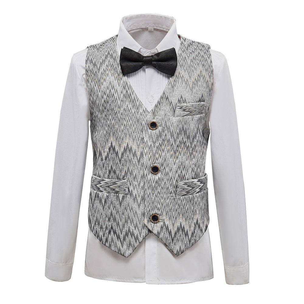 Package includes:Jacket + Pants + Vest+ Shirt + Tie, 5-Piece Suit.