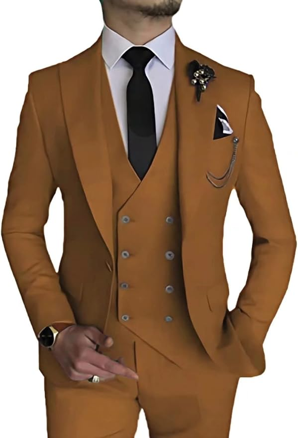 Package includes:Jacket+Pants+vest, 3-Piece Suit.