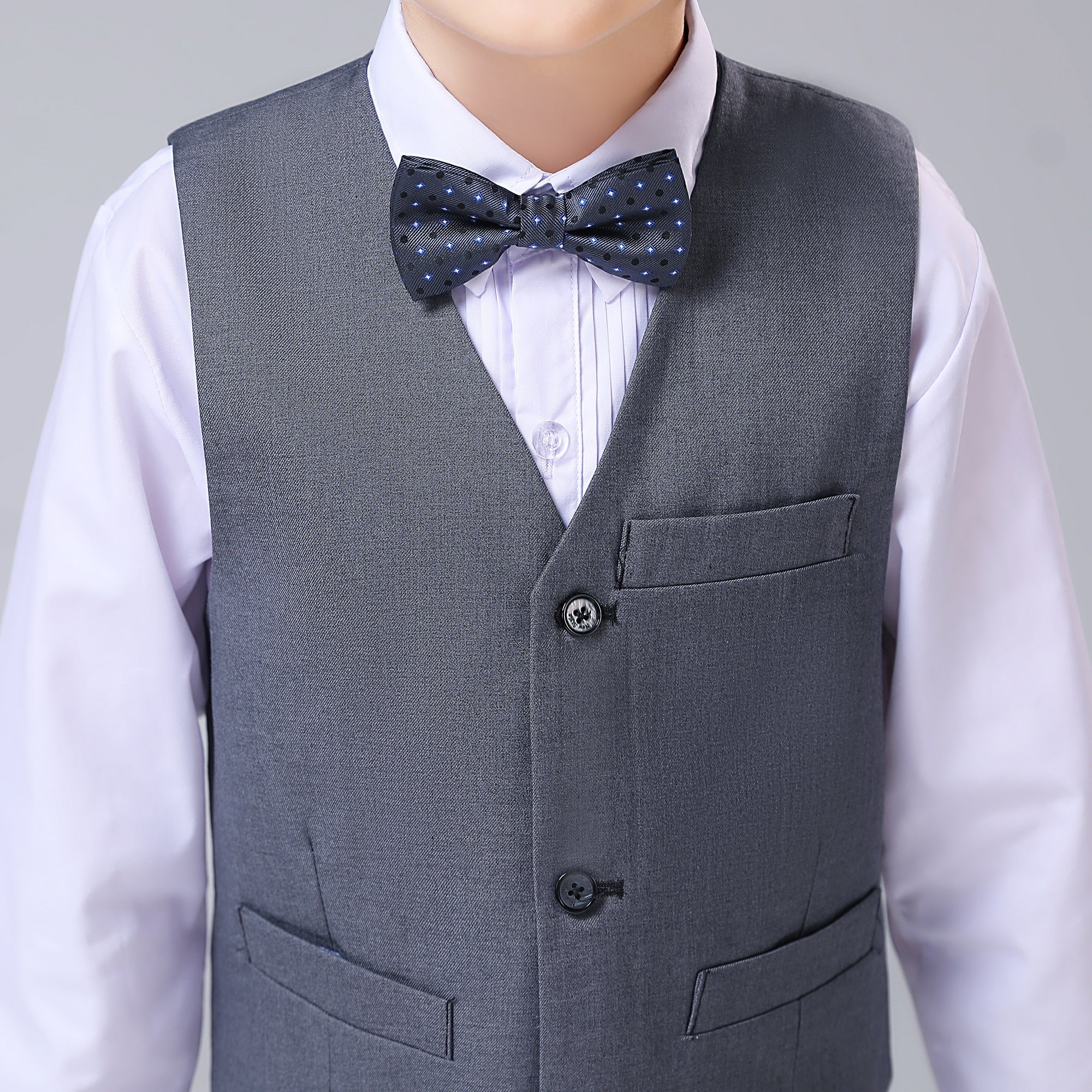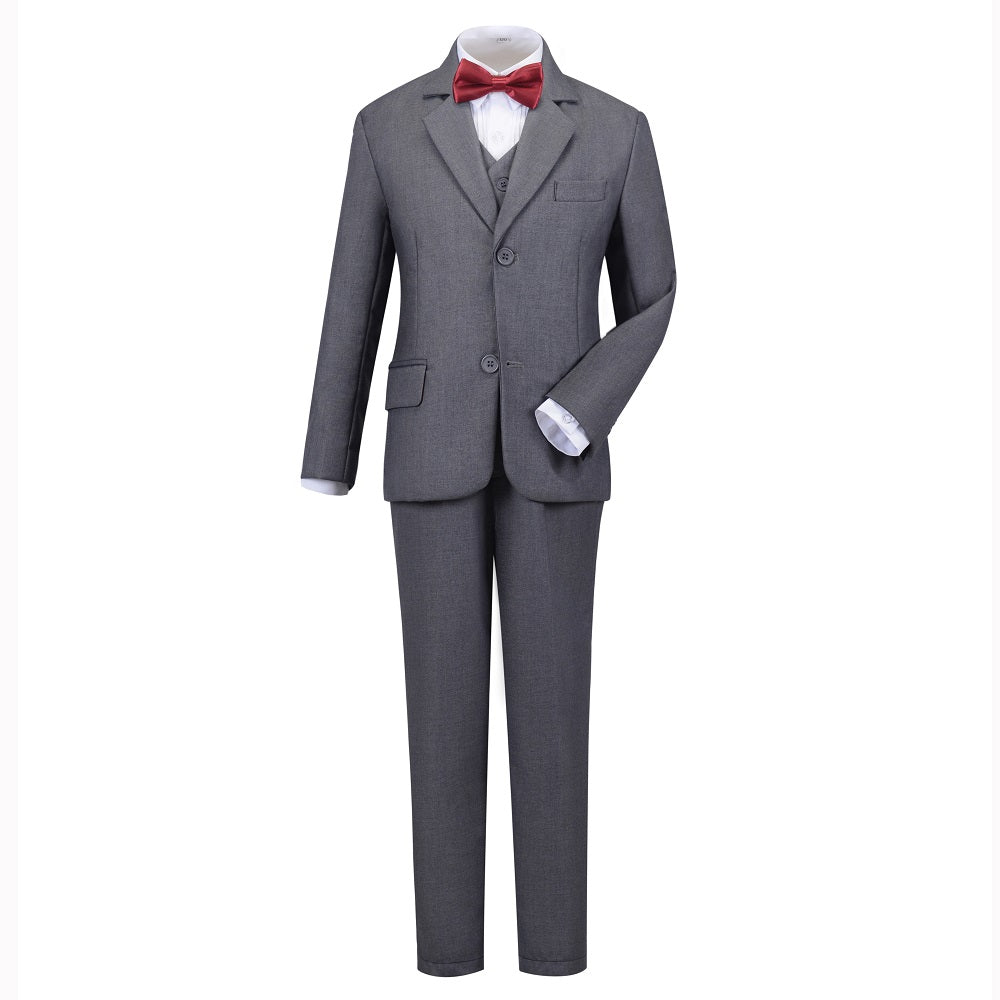 Package includes:Jacket + Pants + Vest+ Shirt + Tie, 5-Piece Suit.
