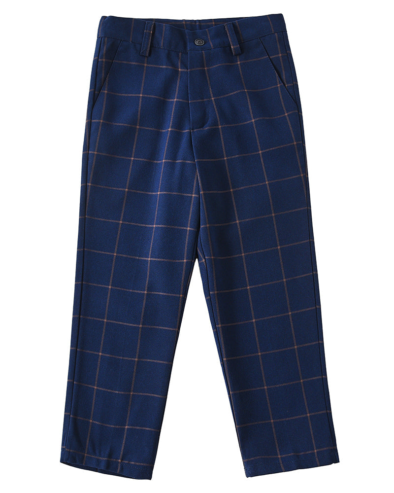 Plaid Blue 4 Piece Boys' Formal Suit Set with Vest Pants Dress Shirt and Tie BS44