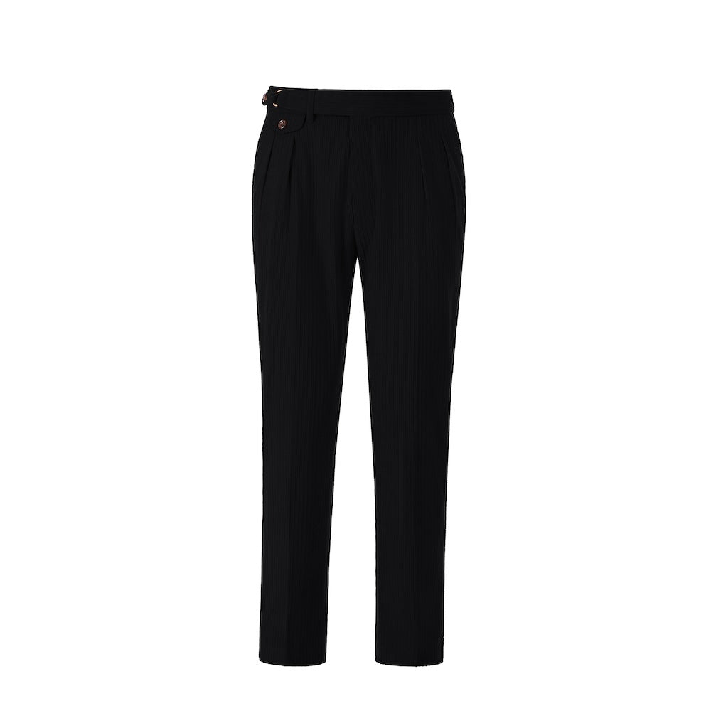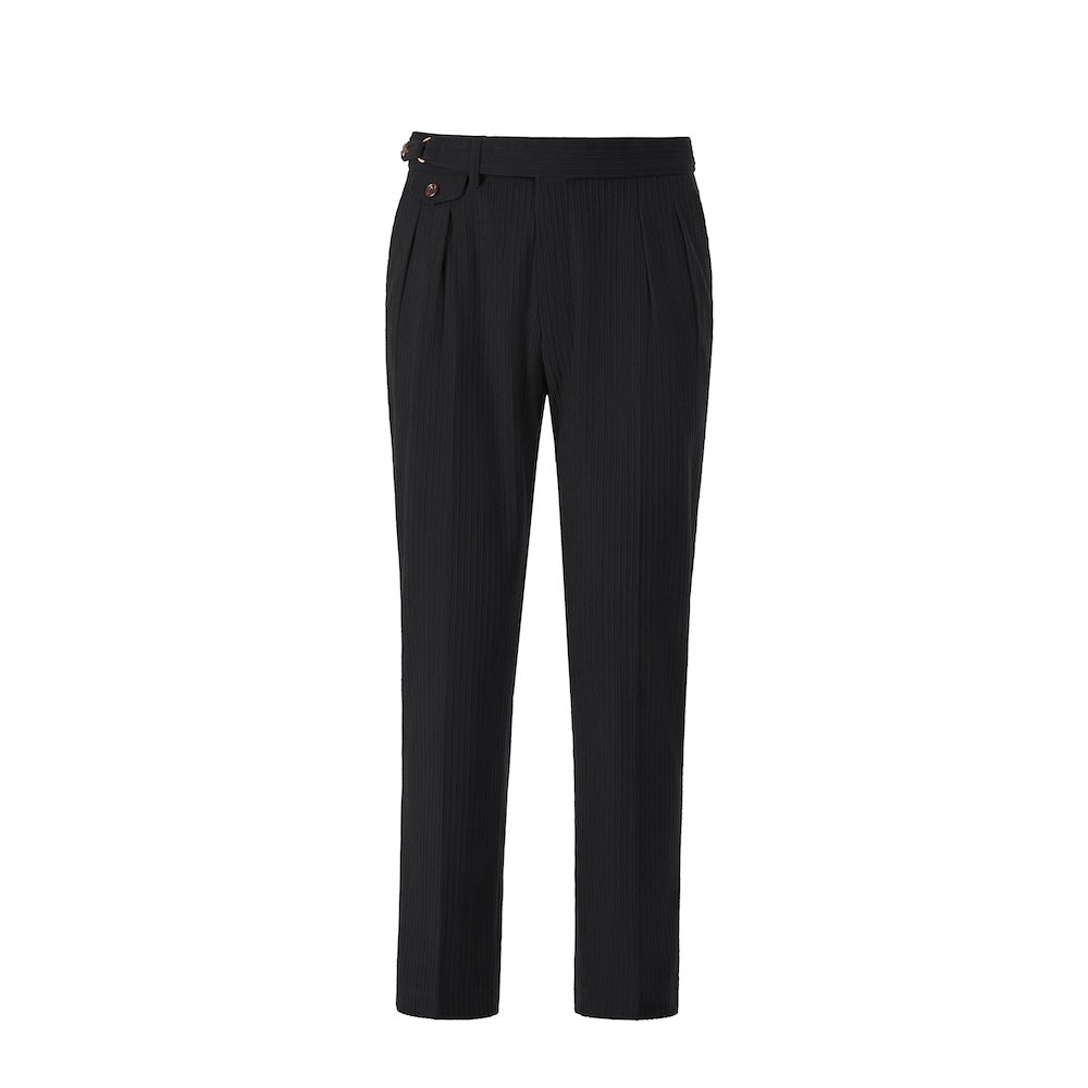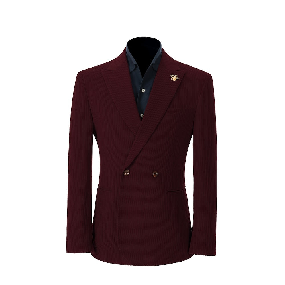 SUIT FEATURESďźJacket: double breasted / peak lapel /Â 2 real side pockets/ 1 chest pocket/ 1 inner pocket; Pants: flat front / expandable waist.